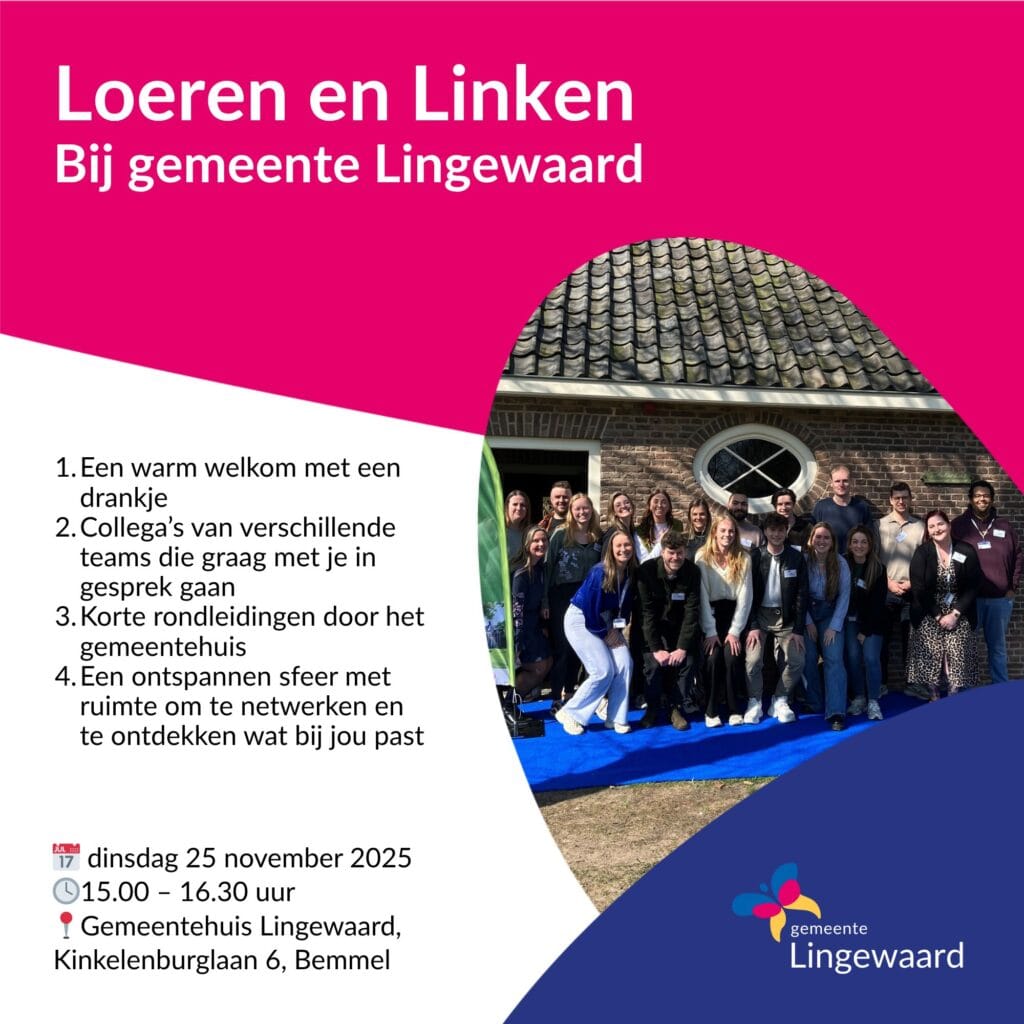 Bij gemeente Lingewaard werk je in een groene, betrokken en ambitieuze organisatie. We staan midden in de samenleving, met oog voor elkaar en ruimte voor initiatief. Samen bouwen we aan een leefbare toekomst, met aandacht voor balans, ontwikkeling en gezonde lef. Of je nu starter bent of ervaren professional: hier krijg je vertrouwen, verantwoordelijkheid en de kans om te groeien. In Lingewaard maken mensen het verschil – en daar kun jij onderdeel van zijn.